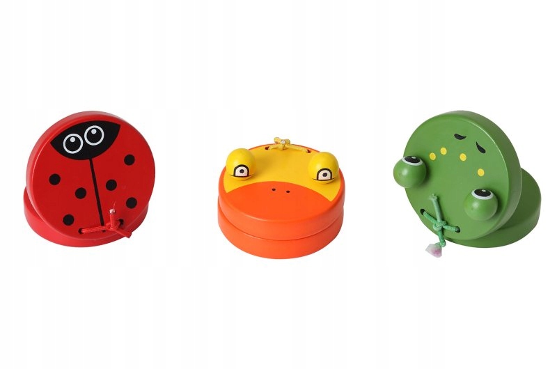 Drewniane kastaniety żabka, kaczuszka i biedronka sprawdzą się jako jeden z pierwszych instrumentów dla Twojego dziecka.