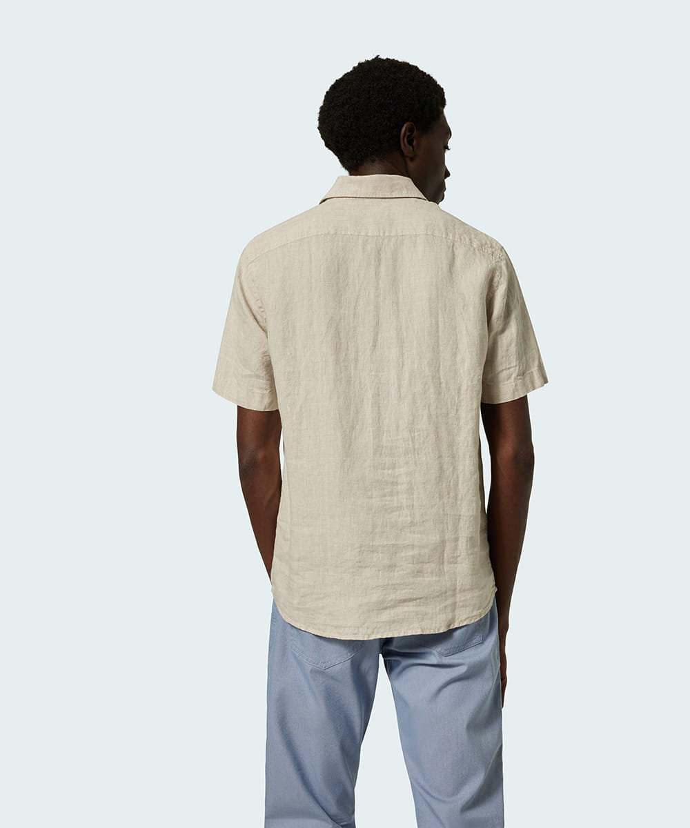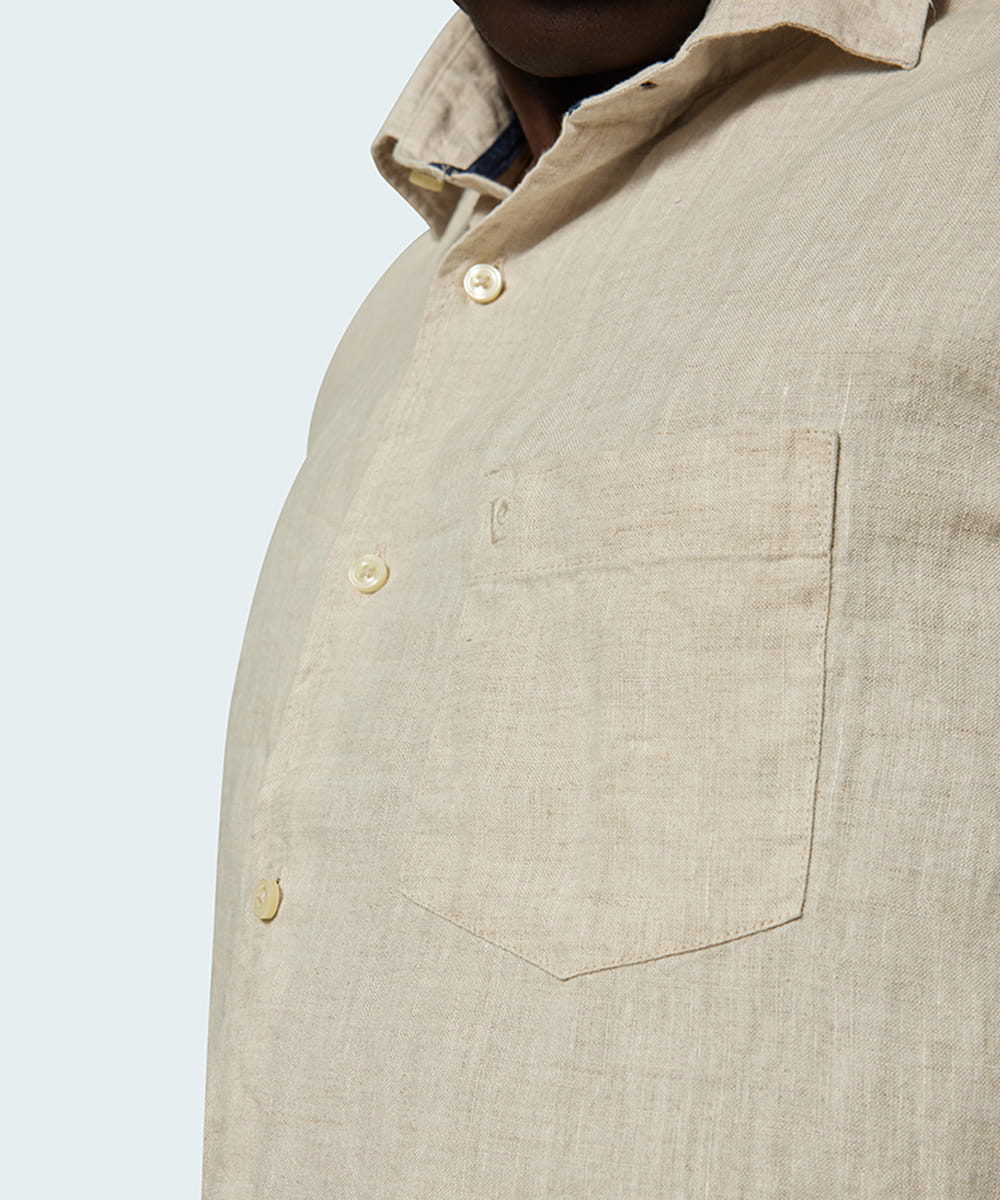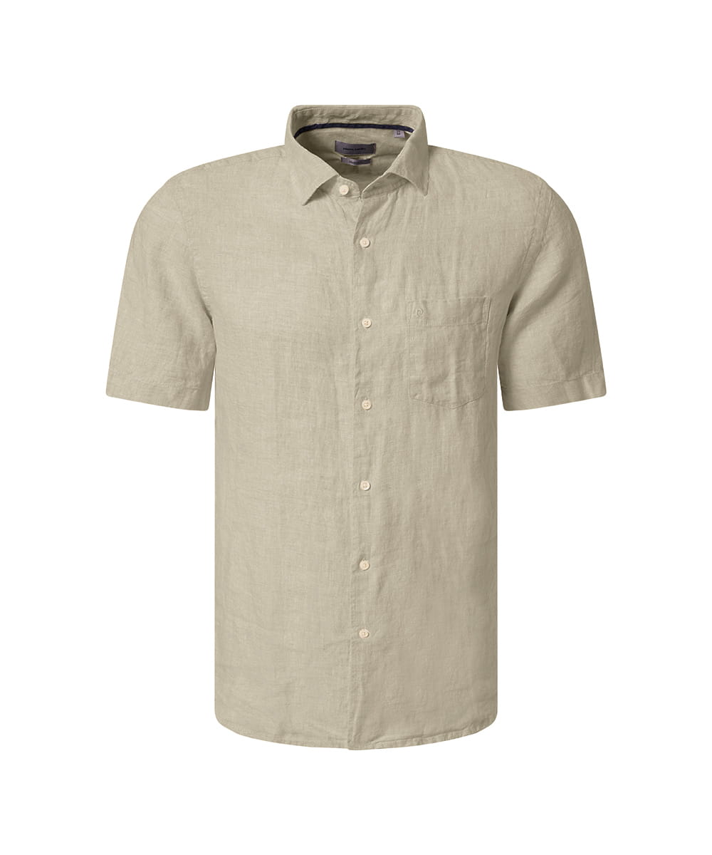 Lniana koszula Pierre Cardin z krótkim rękawem. Na lewej piersi kieszeń z logo producenta
