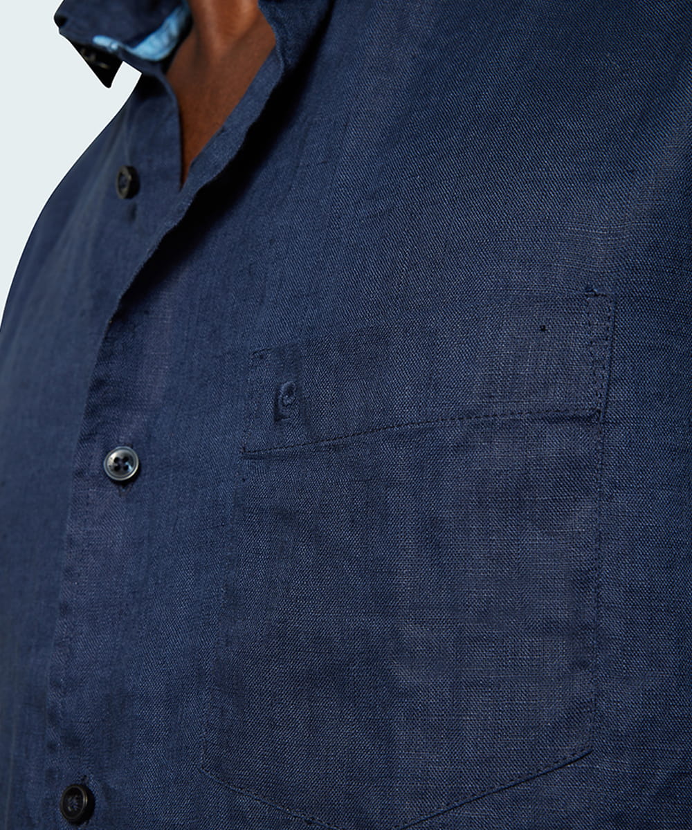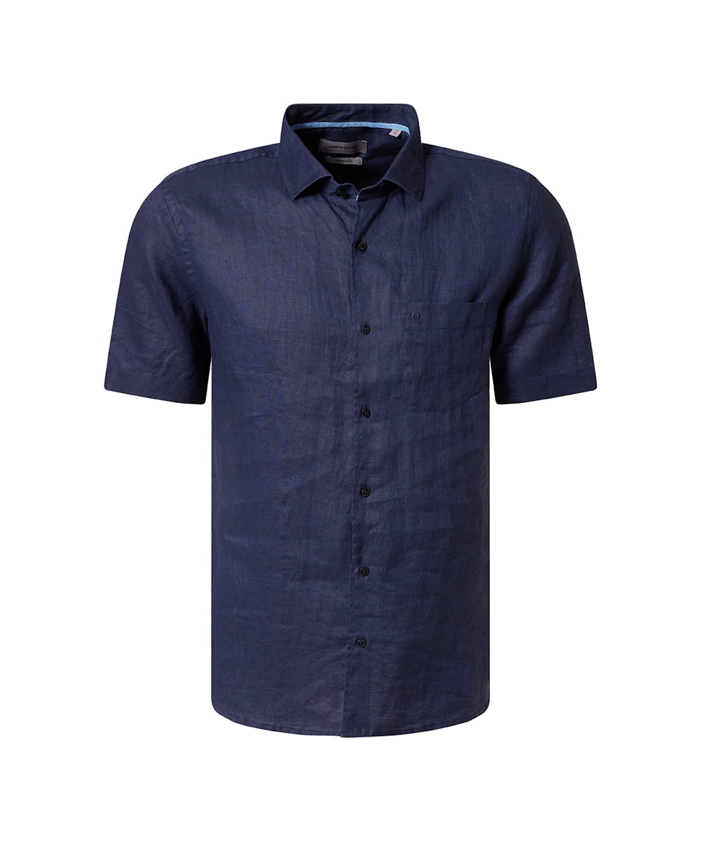 Lniana koszula Pierre Cardin z krótkim rękawem. Na lewej piersi kieszeń z logo producenta