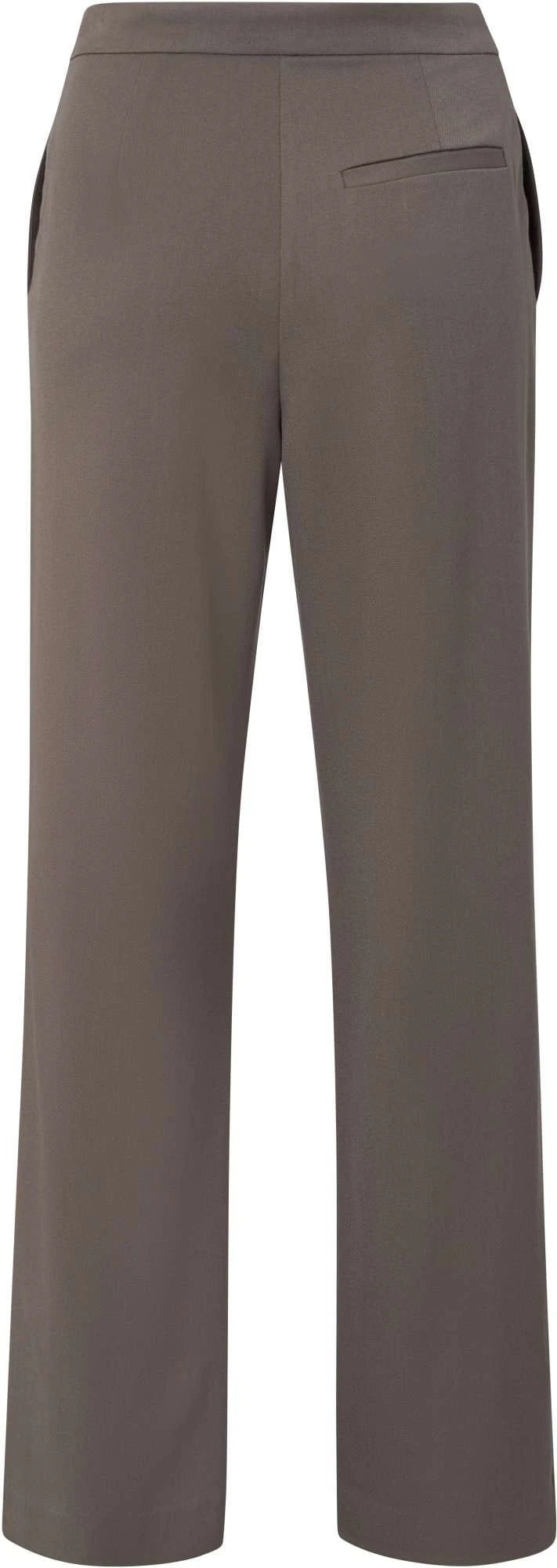 Spodnie posiadające wysoki stan, niewidoczne zapięcie oraz boczne kieszenie w bocznych szwach. Wygodnie dopasowują się do bioder i są szerokie w nogach.