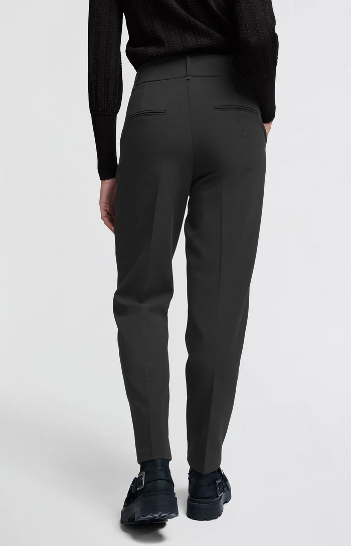Te czarne spodnie mają wysoki stan, proste nogawki i regularny krój. Wykonane z miękkiej tkaniny tkanej, która idealnie dopasowuje się do ciała, są idealne zarówno do strojów biznesowych, jak i codziennych. Połącz je z bluzką lub topem, aby uzyskać elegancki wygląd.