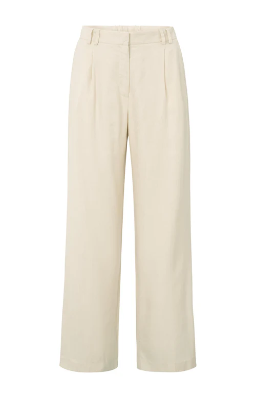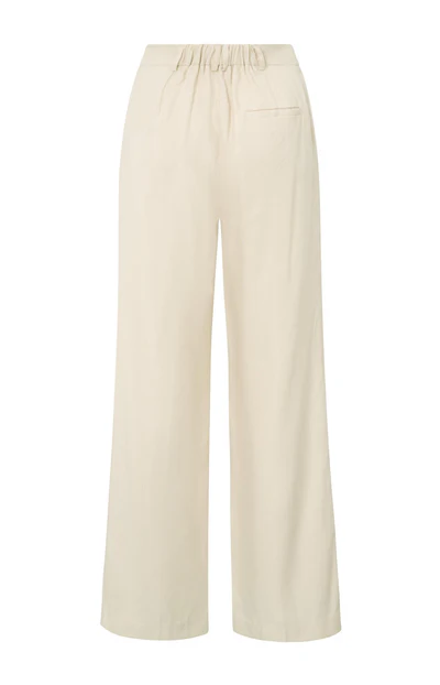 Te eleganckie spodnie są wykonane z przewiewnej mieszanki lnu i mają luźny krój z szerokimi nogawkami dla stylowego wyglądu. Zaprojektowane z wysokim stanem, przednimi plisami i praktycznymi kieszeniami bocznymi. Idealne do sparowania z bluzką lub topem dla eleganckiego i wygodnego stroju.
