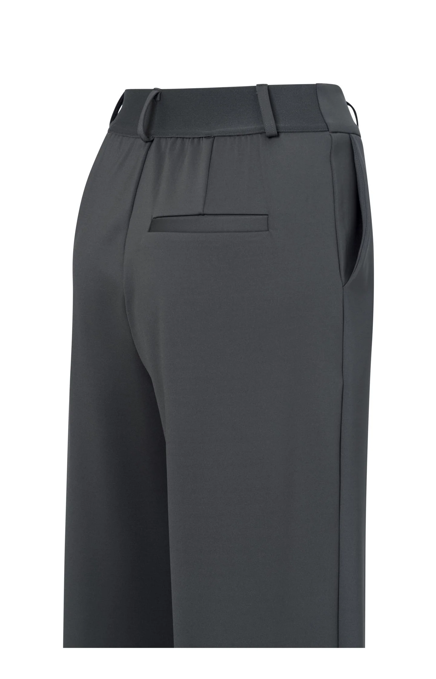 Te stylowe spodnie jerseyowe mają szerokie nogawki, plisowane detale i elastyczny pas.