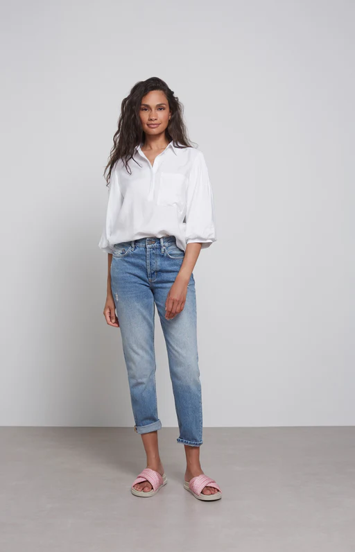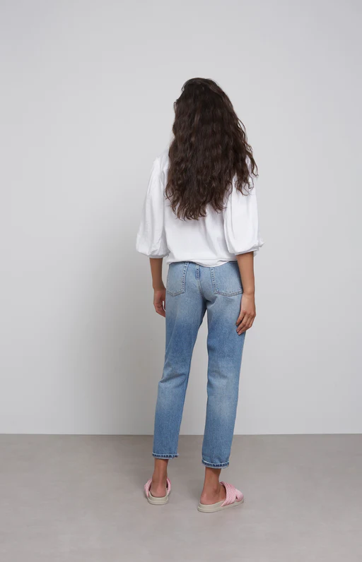 Podnieś poziom swojej dżinsowej gry dzięki tym dżinsom z prostymi nogawkami i wysokim stanem, z subtelnymi postrzępionymi detalami i klasycznym stylem z pięcioma kieszeniami. Wysoki stan zapewnia pochlebne i wygodne dopasowanie, a prosta nogawka zapewnia wszechstronność stylizacji.