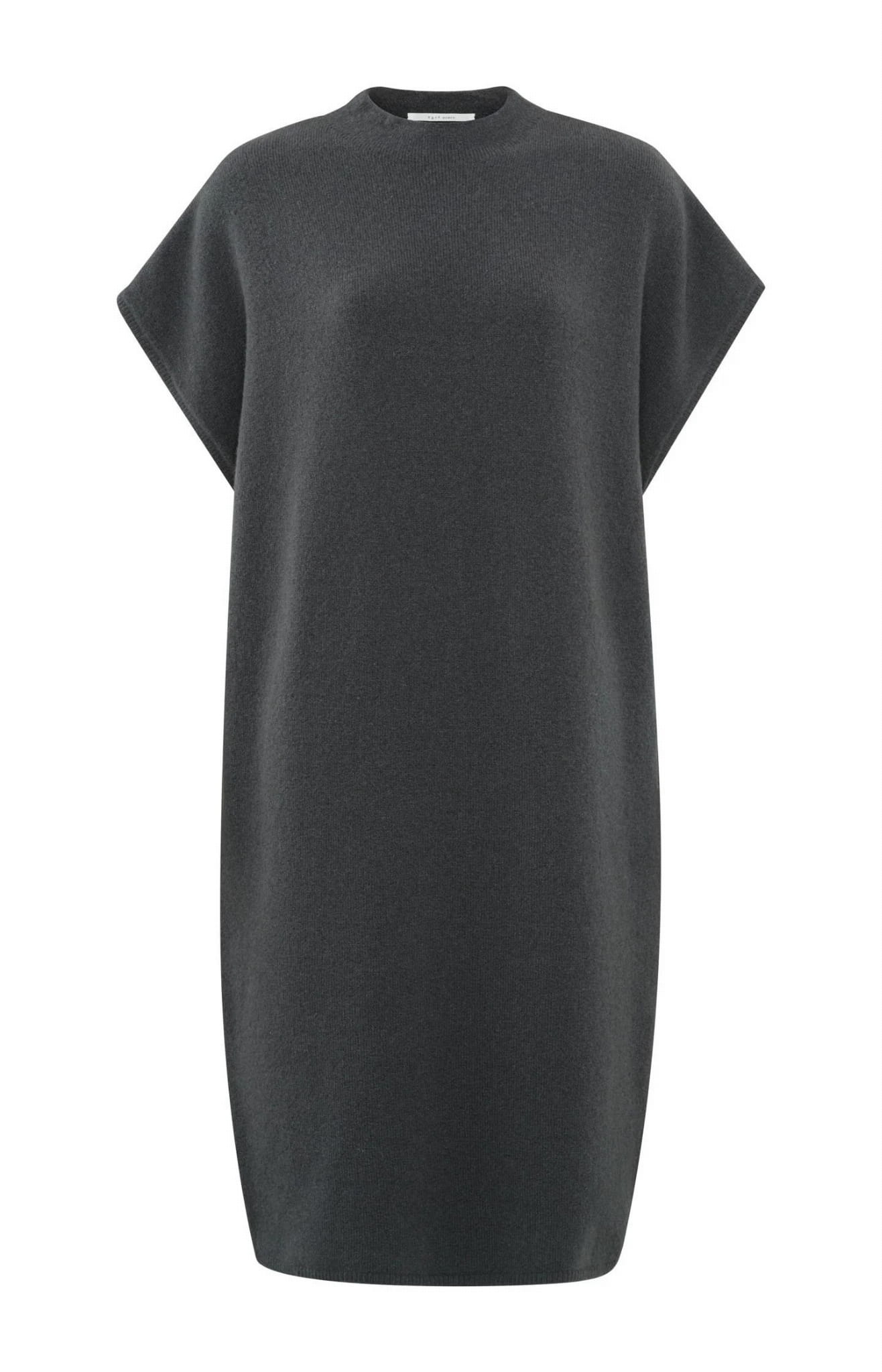 Wełniana sukienka z dzianiny z wysokim dekoltem, o luźnym kroju.