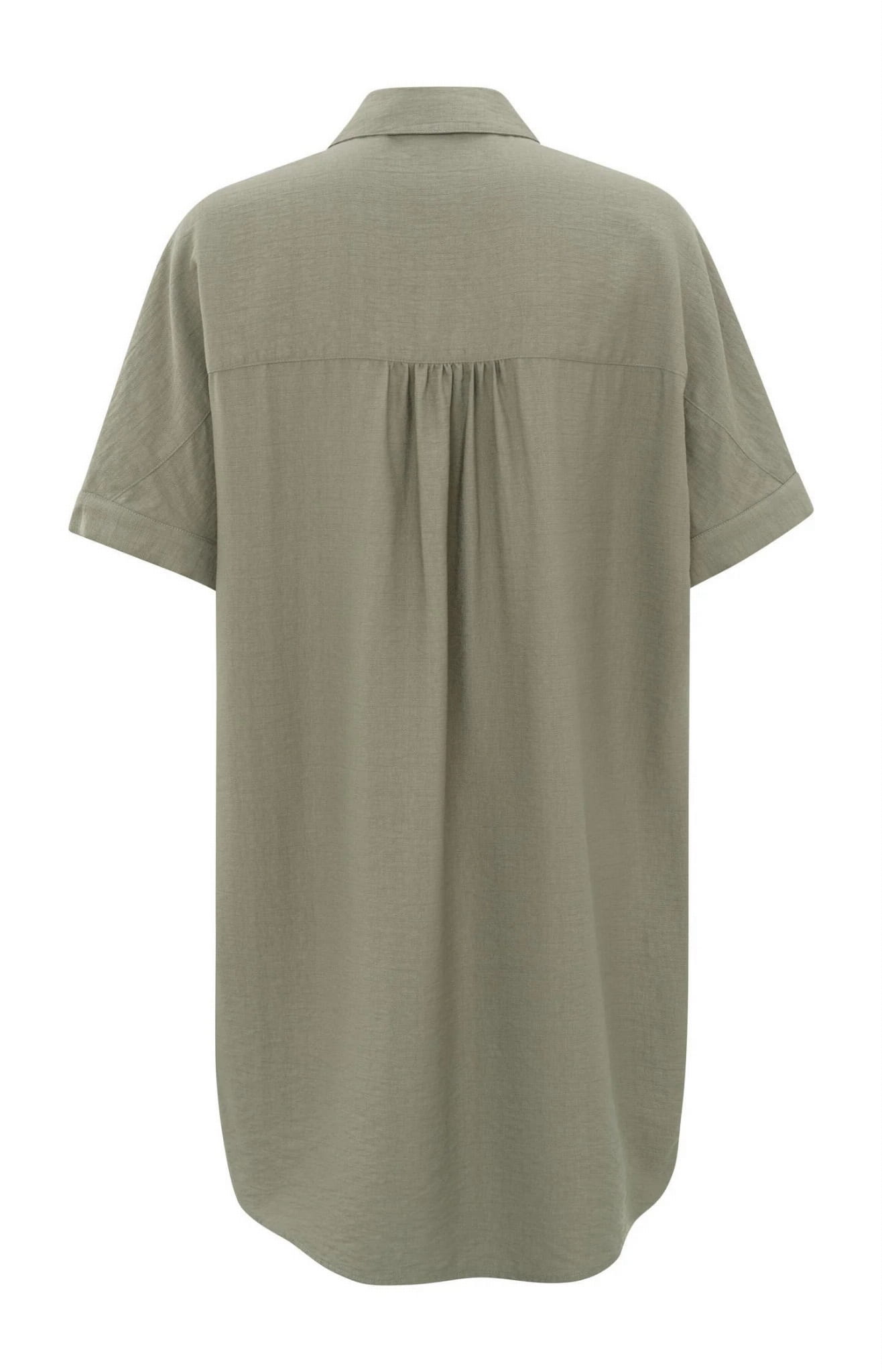 Elastyczna sukienka koszulowa z krótkimi rękawami, bez szwów na ramionach, guzików i kołnierzyka.