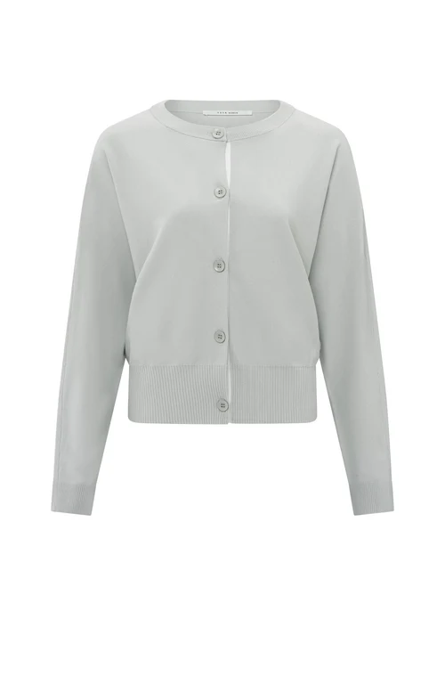 Ten miękki kardigan ma luźny krój z rękawami typu nietoperz i zapięciem na guziki. Prążkowane mankiety i dół zapewniają regularne dopasowanie, a subtelne kontrastowe detale wzdłuż zapięcia dodają wyrafinowanego akcentu. Wygodny i stylowy element, idealny do noszenia warstwowego.