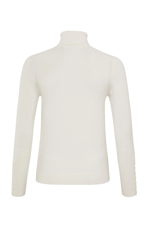 Sweter z golfem jest wykonany z mieszanki wiskozy. Sweter ma długie rękawy ozdobione guzikami i ma dopasowany krój.