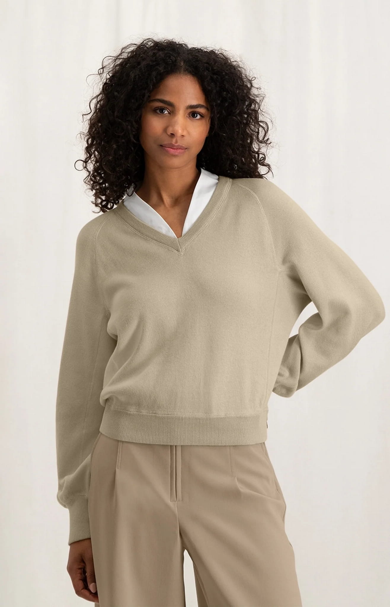 Sweter wykonany z bawełny, z długimi, baloniastymi rękawami i dekoltem w kształcie litery V.