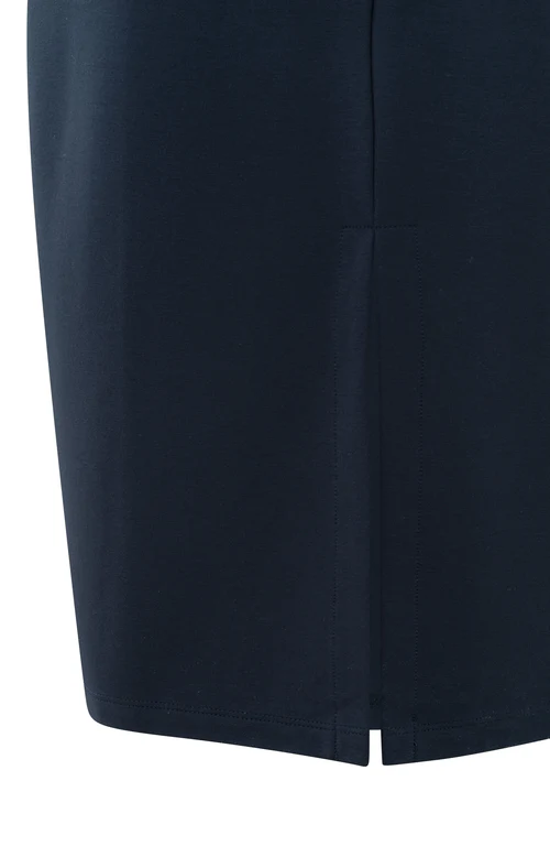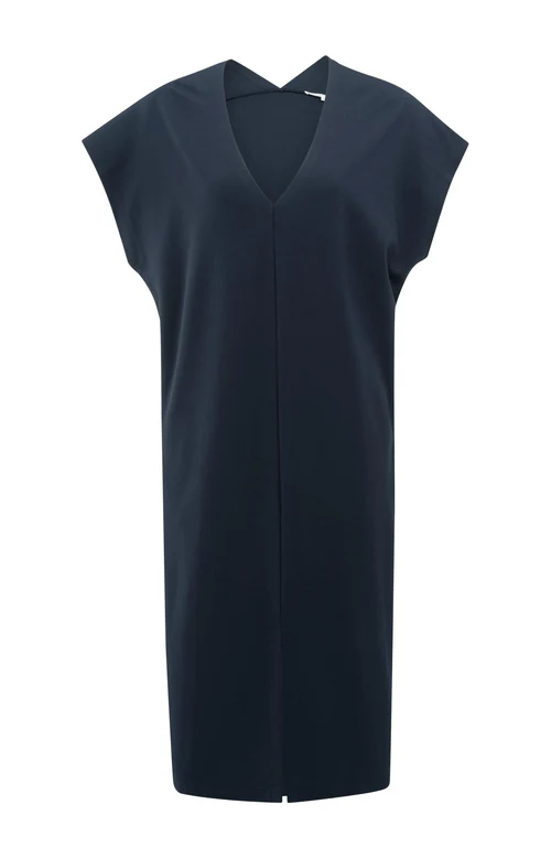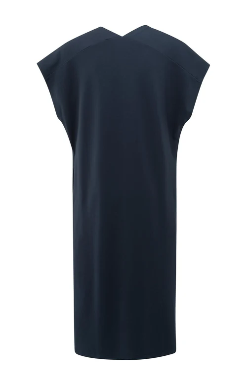 Bezrękawnik, podwójny dekolt w serek i subtelne rozcięcie z przodu nadają jej nowoczesny i elegancki wygląd.