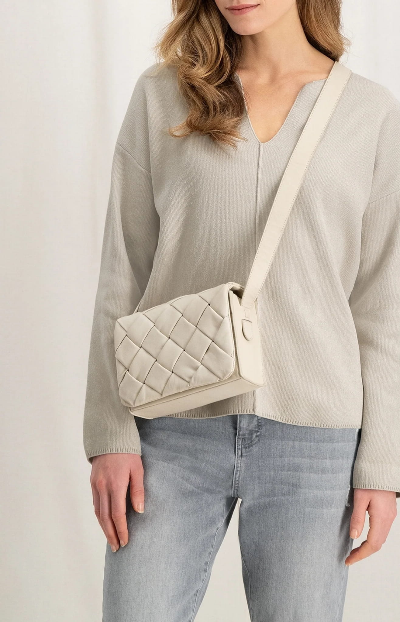 Pleciona torba na ramię, wykonana z prawdziwej skóry, z regulowanym paskiem i zapięciem na magnes. Posiada boczną kieszeń zapinaną na zamek. Wymiary: 21cm x 7cm x 15cm. Uchwyt można regulować w zakresie od 115 cm do maksymalnie 130 cm.