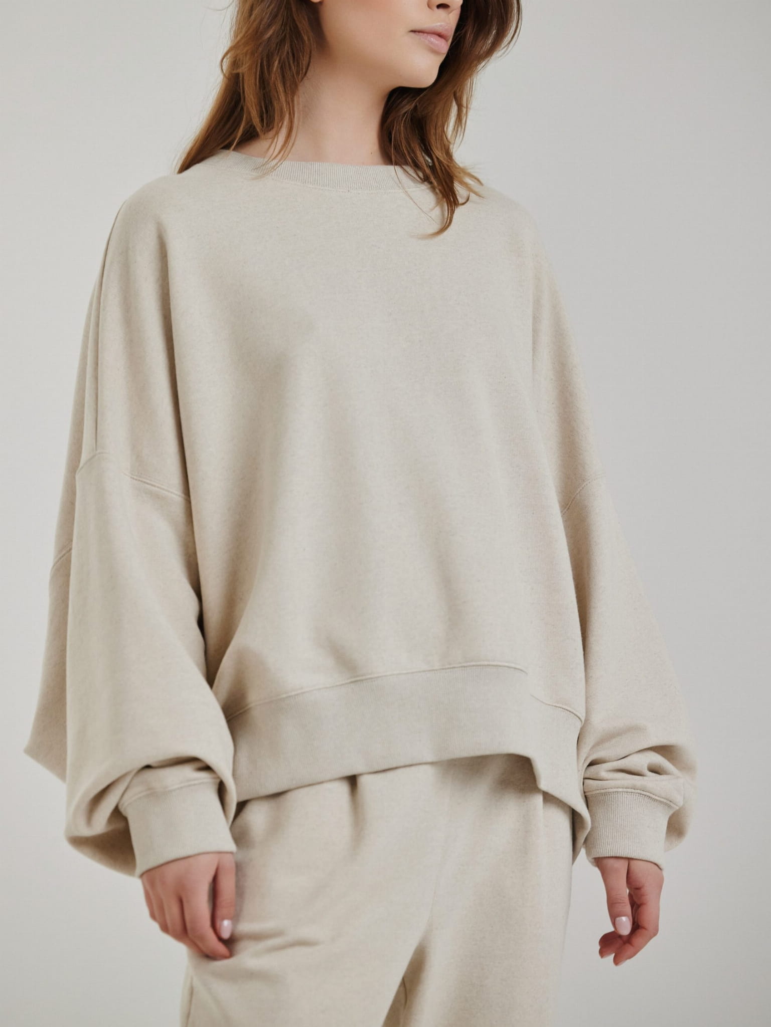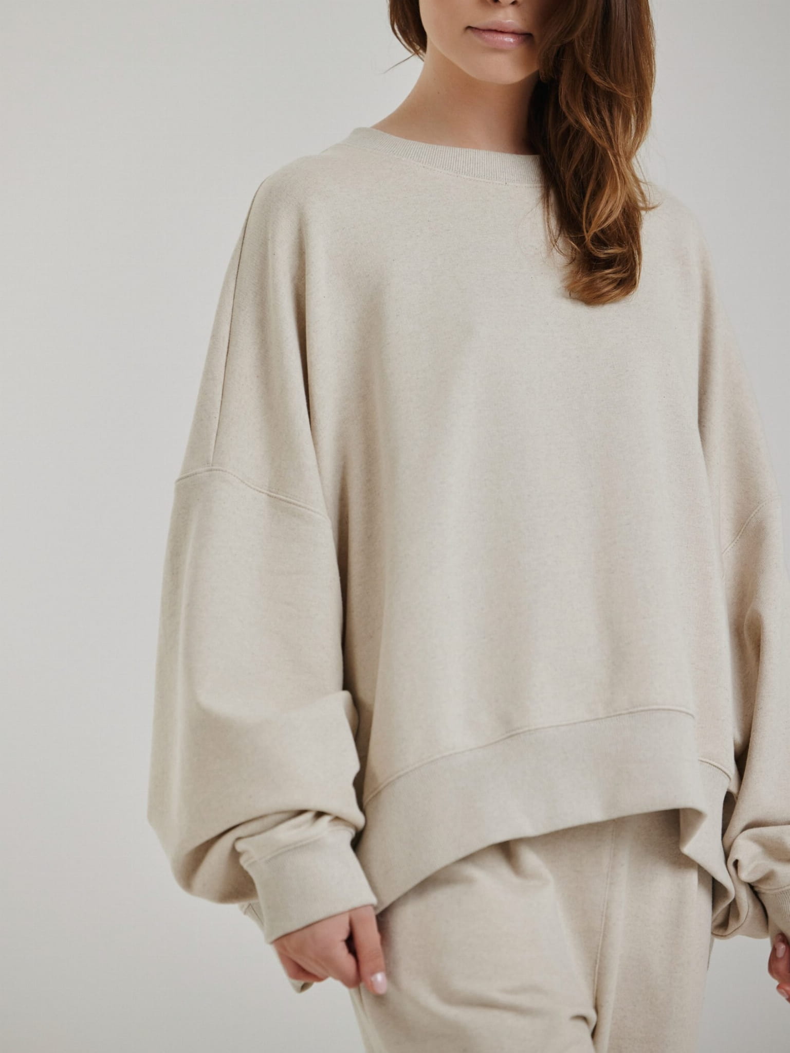 Oversizowa bluza uszyta z melanżowej bawełny z dodatkiem eko konopii w składzie.
