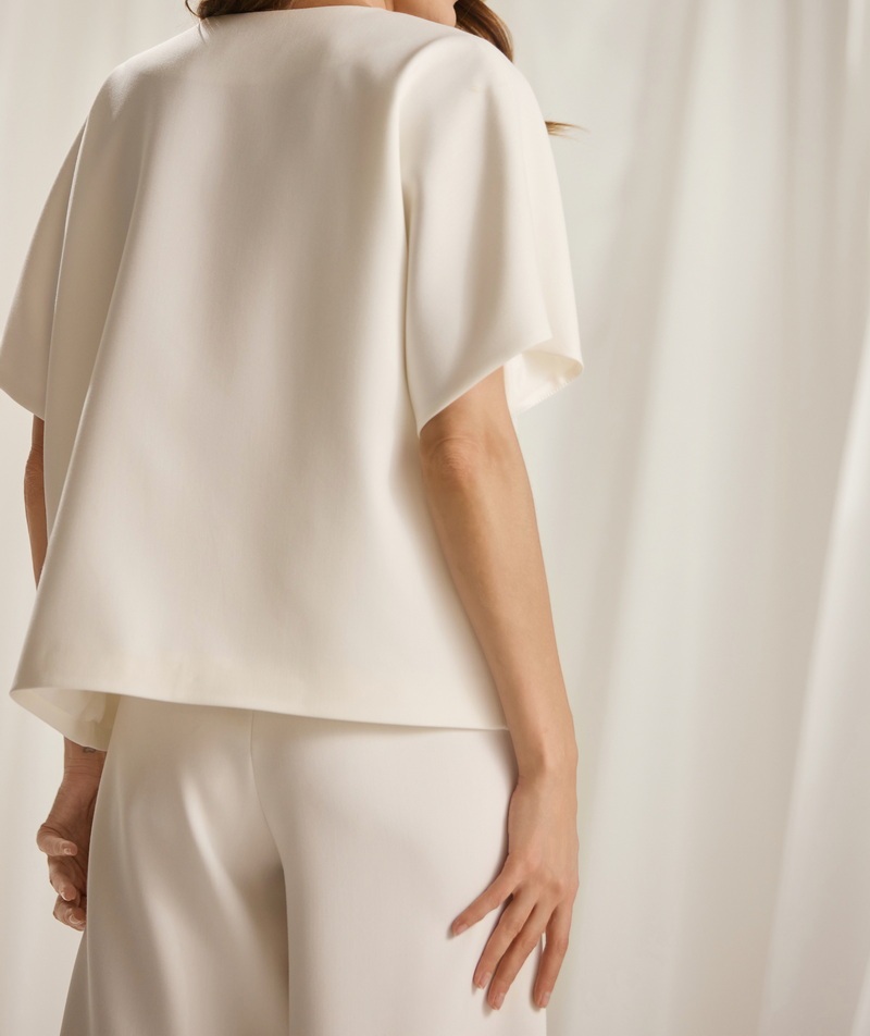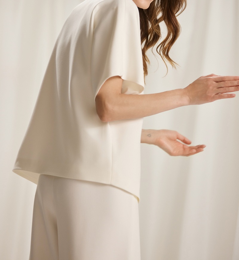 Z krótkim kimonowym rękawkiem, taliowana. Odszyta wiskozową podszewką.