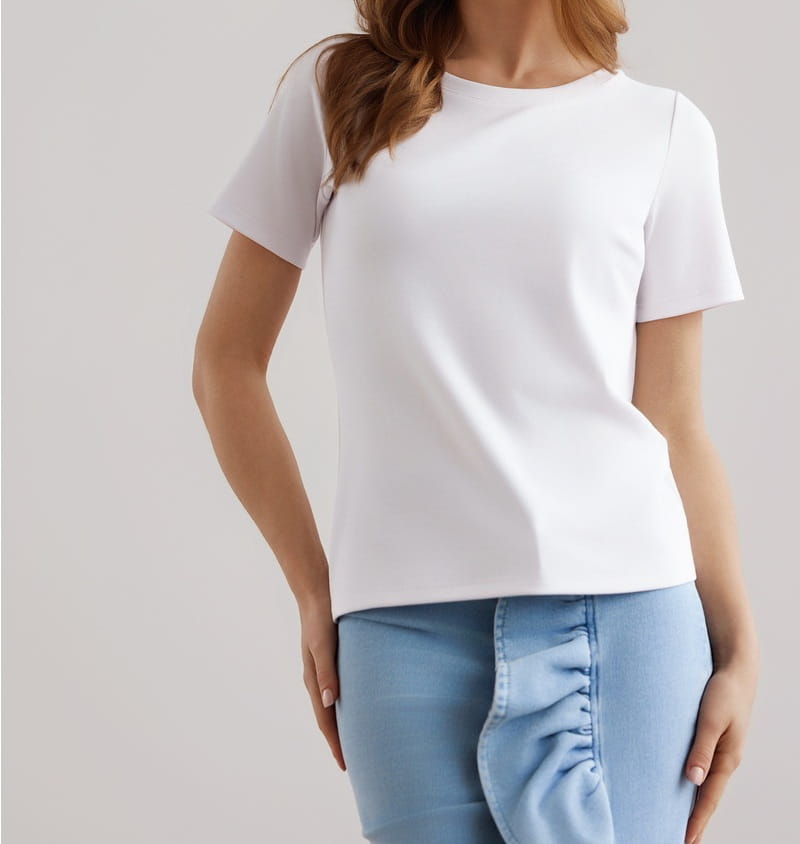 T-shirt z mięsistej dzianiny wiskozowej, z krótkim rękawem.